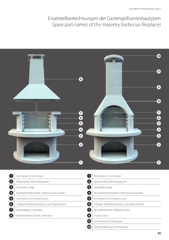 Ersatzteilbezeichnungen der Gartengrillkaminbautypen