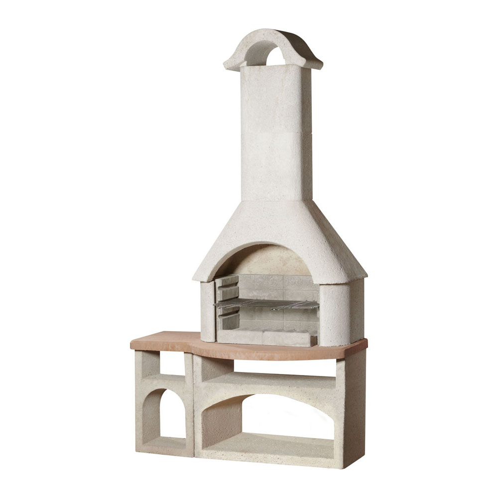 Eine durchdachte Kombination aus Gartengrillkamin und integriertem Beistelltisch. Die reinweiße Quarzstruktur und die terrakottafarbene Simsplatte setzen klare Akzente, dazu bietet der Kamin viel Ablagefläche – perfekt für ausgelassene Grillpartys. Der Grill ist für Holzkohle geeignet und TÜV- sowie GS-zertifiziert. Die Lieferung erfolgt mit Aufbauanleitung, inklusive Grillrost und Ansatzkleber.