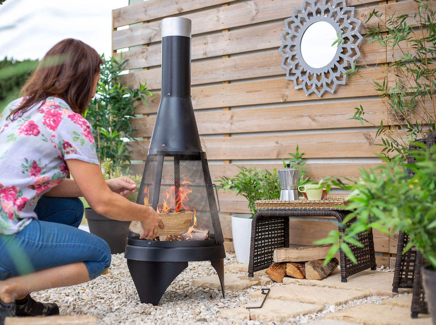 Dieser Gartenkamin wird dank seines filigranen Gitters schnell zum stilvollen Mittelpunkt auf der Terrasse. Das umlaufende Sichtfenster ermöglicht freien Blick auf das Flammenspiel aus jeder Richtung, während der kontrastreiche Kaminabschluss einen markanten Akzent setzt. Der Kamin spendet angenehme Wärme an kühlen Abenden und wirkt zugleich als dekorative Gartenskulptur. Die Lieferung erfolgt zerlegt inklusive Aufbauanleitung. Auch in Größe L erhältlich.