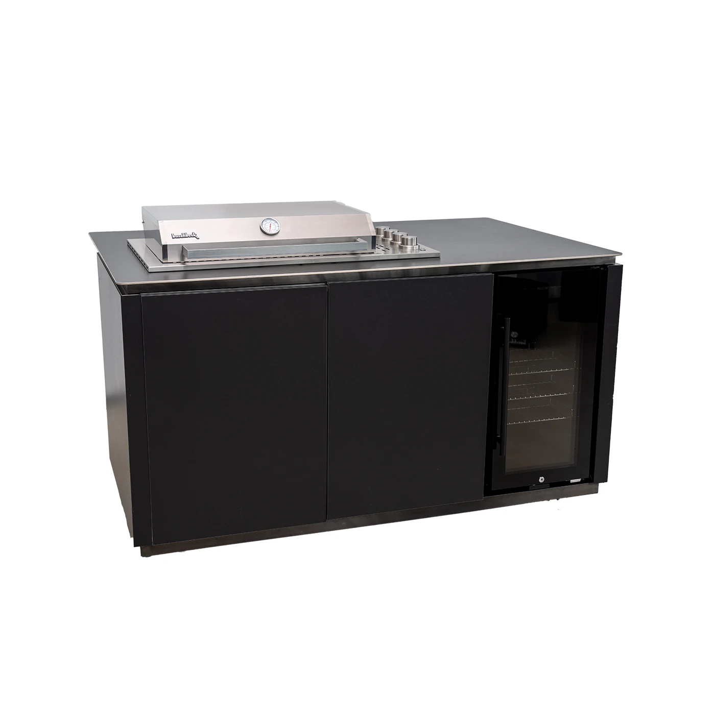 Die Kücheninsel Glasgow vereint modernes Design mit einer exklusiven Ausstattung für anspruchsvolle Grillmomente. Drei stufenlos regulierbare Edelstahl-Guss-Hauptbrenner und ein Keramik-Infrarotbrenner als Sizzle Zone (je 4 kW) liefern hohe Temperaturen für scharfes Anbraten und gleichmäßige Grillergebnisse. Grill- und Küchenkorpus bestehen aus Edelstahl und werden von einer eleganten schwarzen Keramikverkleidung ergänzt, die für eine hochwertige Optik und Langlebigkeit sorgt.