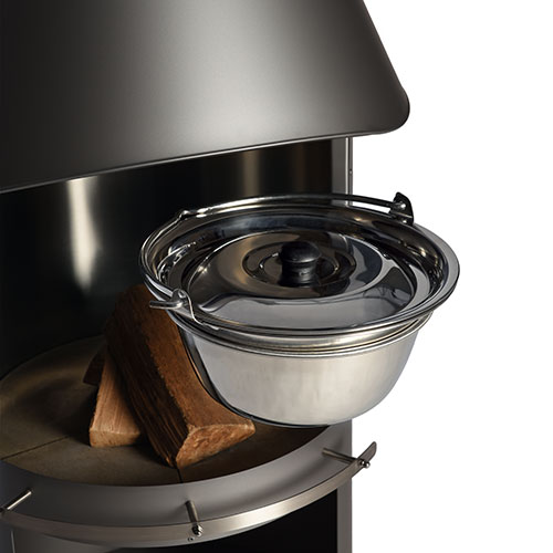 Praktisches Zubehör für den Edelstahlkamin Sydney. Der robuste Edelstahltopf fasst 6 Liter und eignet sich ideal für Suppen, Eintöpfe oder Heißgetränke am offenen Feuer. Einfach in den stabilen Haltering der beiden Modelle einhängen; der Henkel erleichtert das sichere Entnehmen des heißen Topfes.