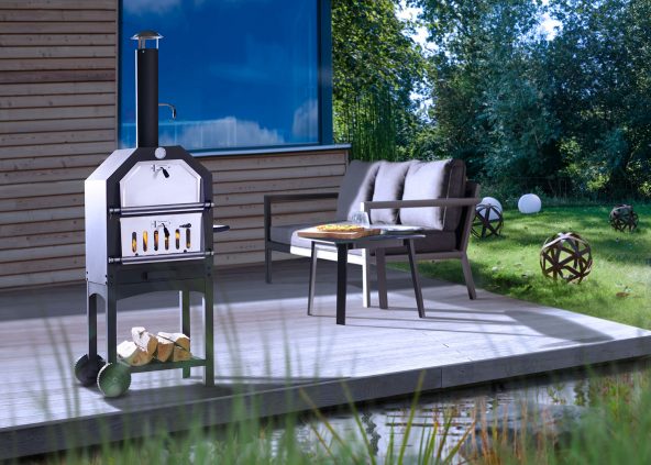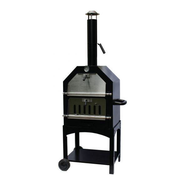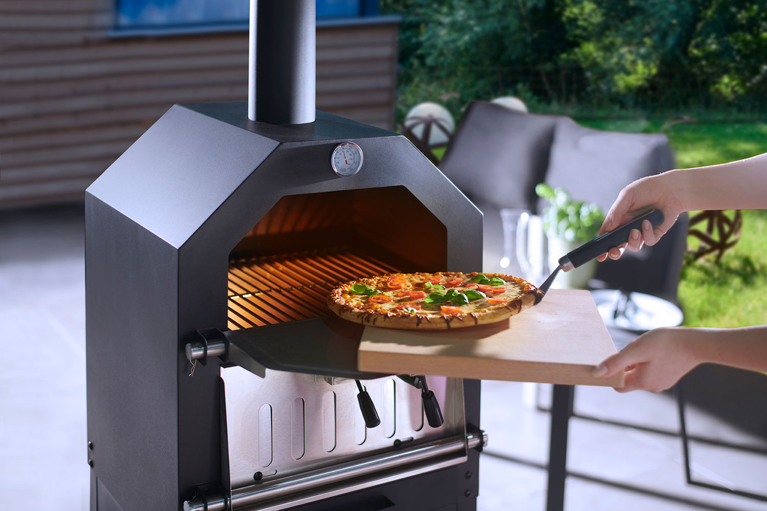 Der Pizzaofen Italia bietet vielseitigen Genuss im Freien: Er eignet sich zum Backen, Grillen und Räuchern und spendet an kühlen Abenden zusätzlich angenehme Wärme. Für Pizza wird einfach der Pizzastein auf das Grillrost gelegt, die regelbare Lüftung ermöglicht komfortables Räuchern. Eine Temperaturanzeige erleichtert den Backvorgang, das Ascheschubfach sorgt für einfache Reinigung. Die Lieferung erfolgt inklusive Aufbauanleitung. Grillrostmaß ca. 48 × 35 cm.