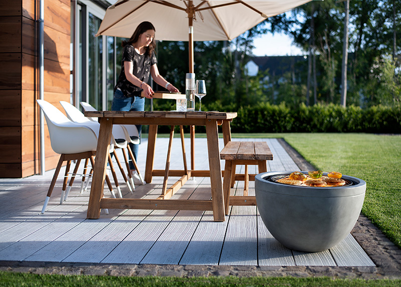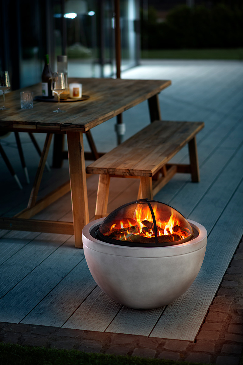 Die Feuerschale Madrid kombiniert Betonoptik mit einem deutlich geringeren Gewicht, denn sie besteht aus Magnesia-Fiberglas – robust, witterungsbeständig und hitzefest bis 900 °C. Der Brenneinsatz und die Funkenschutzhaube sind aus Stahl gefertigt und sorgen für Sicherheit und Langlebigkeit. Damit eignet sich die Feuerschale ideal für gemütliche Grillabende und anschließende Lagerfeueratmosphäre im Garten oder auf der Terrasse. Die Lieferung umfasst verchromten Grillrost, Funkenschutzhaube und Schürhaken.