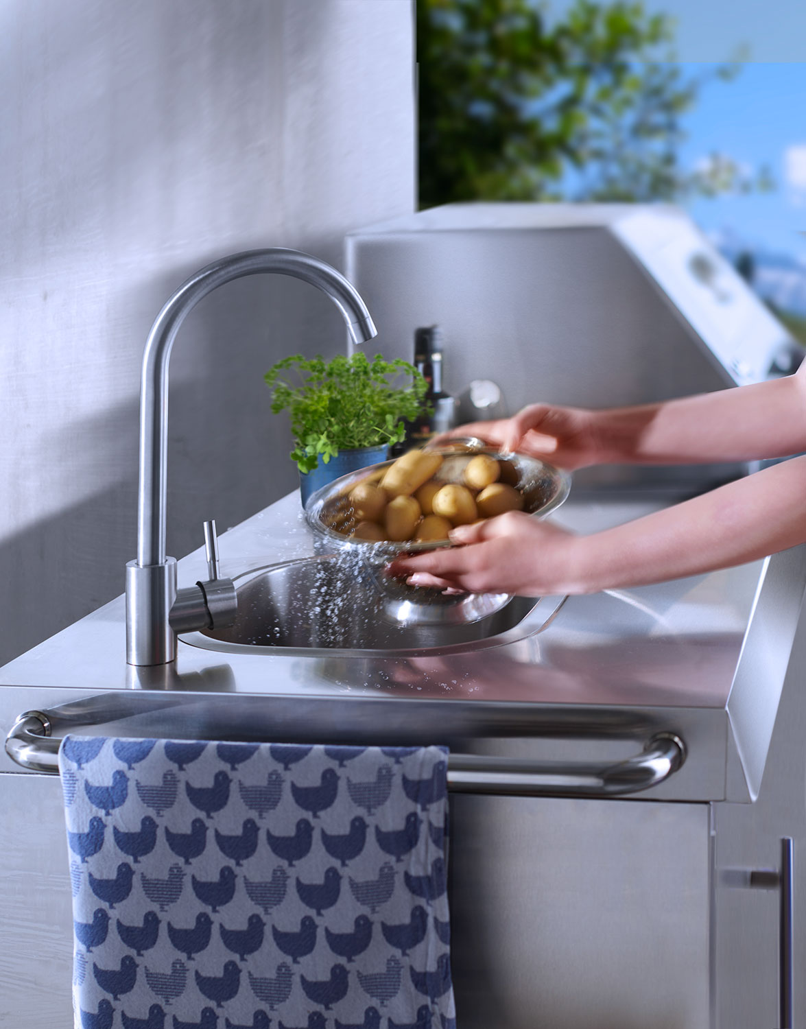 - Spüle mit Ablauf und Armatur