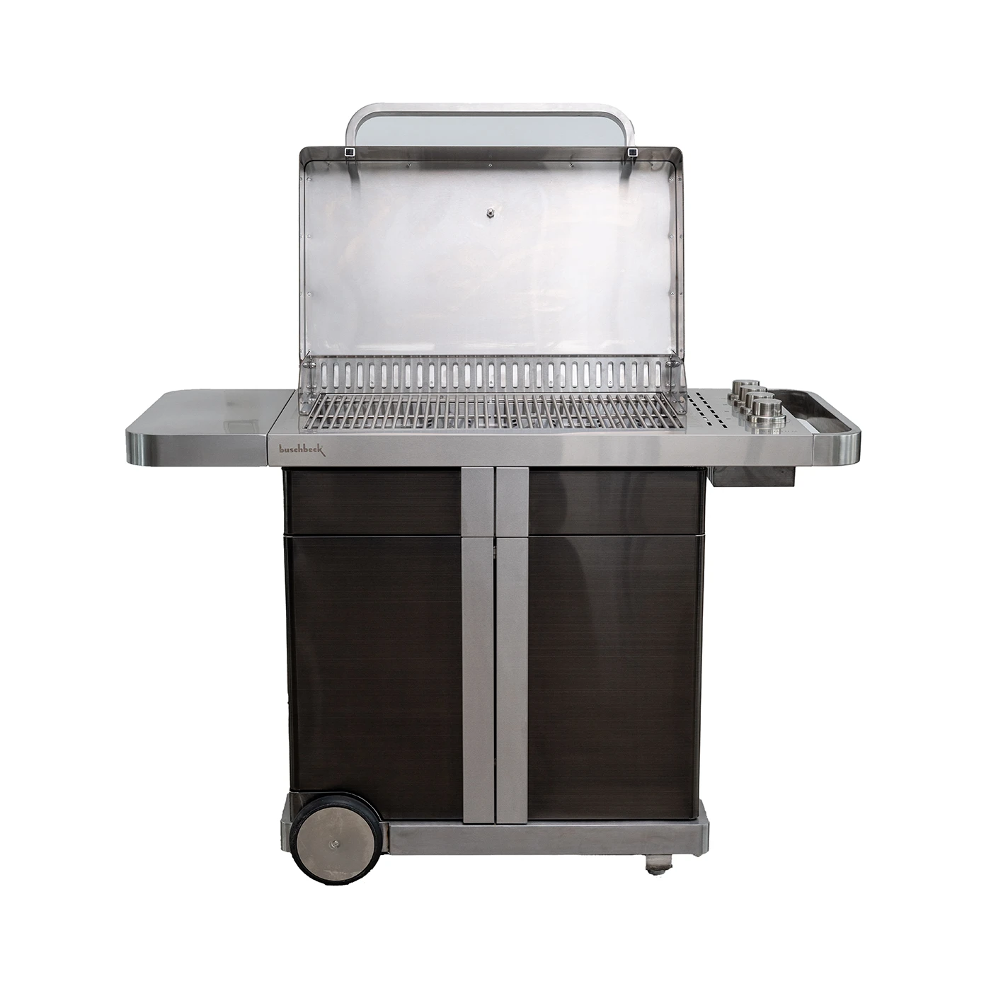 Der Buschbeck Gasgrill P1000 wurde konsequent auf seine Kernaufgabe zurückgeführt: das Grillen. Drei Hauptbrenner und ein Keramik Infrarotbrenner (Sizzle Zone) bieten dabei eine hohe Flexibilität. Zudem sorgen die großen Scheibenräder für Mobilität – auch auf unebenen Böden. Mit seinem modernen europäischen Design ist er die richtige Wahl für Genießer, die Wert auf Ästhetik und Beständigkeit legen.