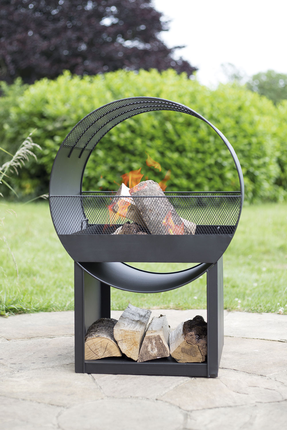 Die Feuerstelle Porthole setzt mit ihrer modernen Form die Flammen eindrucksvoll in Szene und sorgt für eine gemütliche Atmosphäre im Außenbereich. Seiten und Abdeckung sind mit einem Metallgitter versehen, das den Funkenflug reduziert und Sicherheit bietet. Ein integriertes Holzfach hält Brennholz griffbereit und ergänzt das Design optisch wie funktional. Gefertigt aus pulverbeschichtetem Stahl ist die Feuerstelle robust und langlebig – ideal für entspannte Abende auf Terrasse oder im Garten. Die Lieferung erfolgt inklusive Aufbauanleitung.