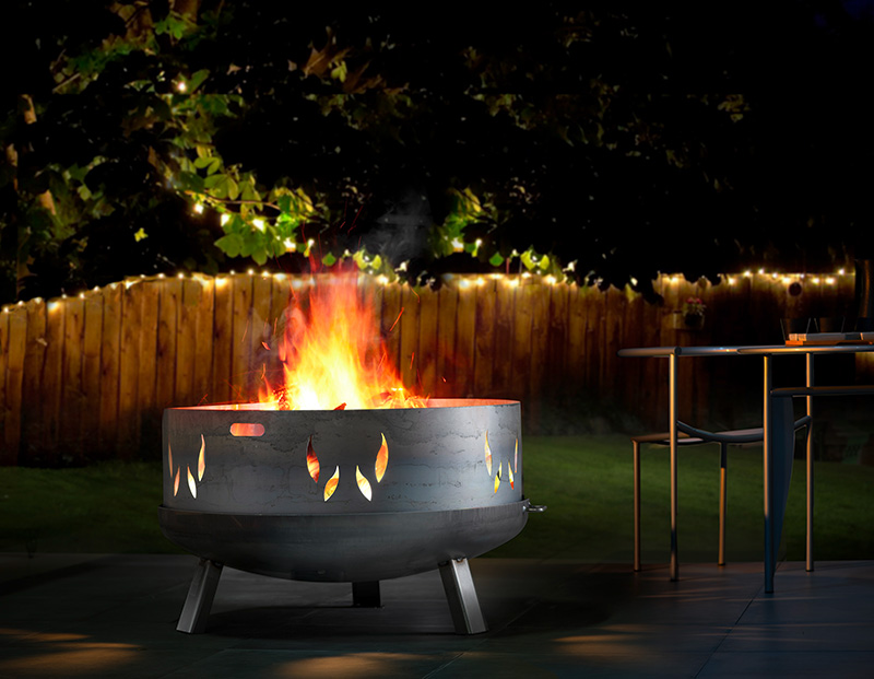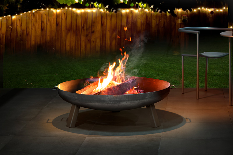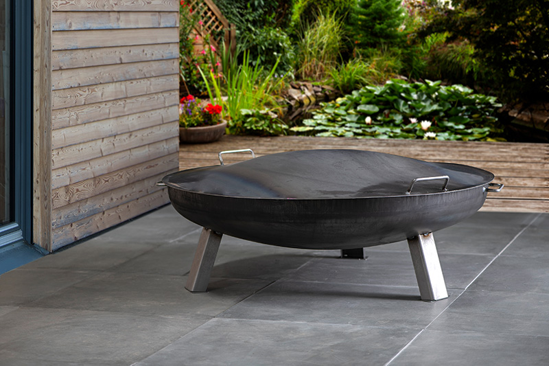Diese Feuerschale aus robustem Eisen überzeugt durch ihre klare Form und schafft eine klassische Lagerfeueratmosphäre. Zwei seitliche Griffe erleichtern den Platzwechsel, die drei Beine  sorgen für sicheren Stand. Die Schale kommt ohne Abflussloch aus, wodurch keine Tropfwasserflecken entstehen. Sie kann mit Holz, Holzkohle oder Briketts betrieben werden und ist in wenigen Minuten aufgebaut. Auch in den Größen XS, S, M und XL erhältlich.
